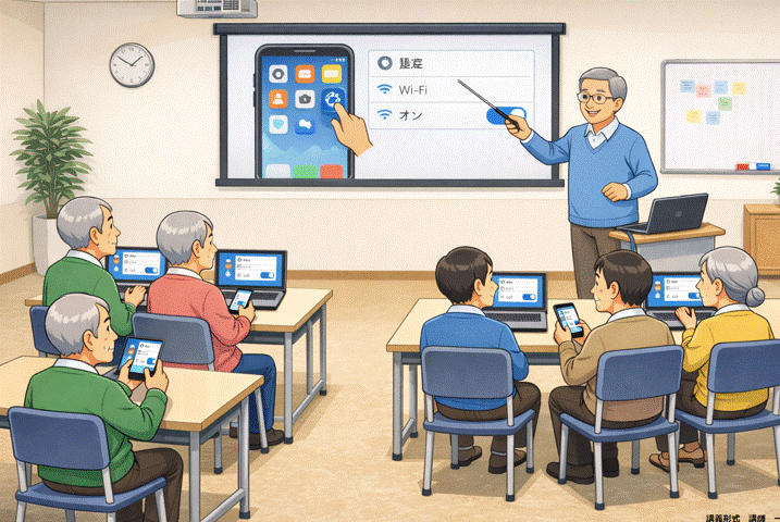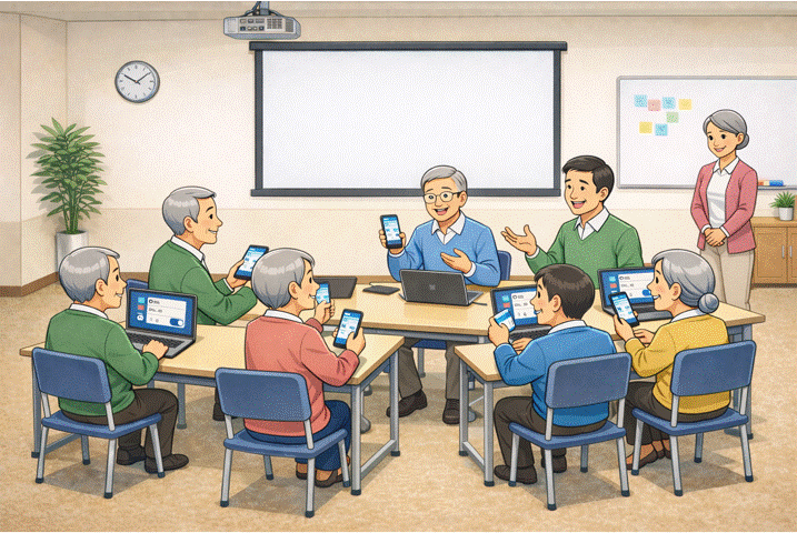 さいたま市からの依頼や地域自治体からの依頼に応じて、シニア層のスマホの使い方をわかりやすく指導し、